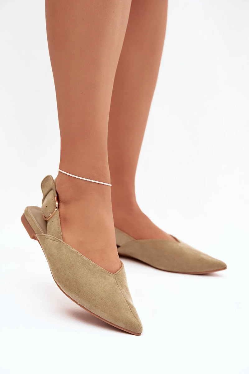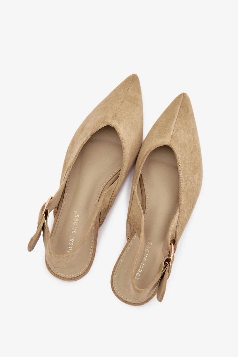 Dámské baleríny vyrobené z ekologické semiše jsou stylovou a pohodlnou volbou na každý den. Model na ploché podrážce zaručuje komfort a špičaté nosky dodávají eleganci a jemně zeštíhlují nohu. V zadní části je nastavitelné pásko zakončené velkou dekorativní přezkou, která přitahuje pozornost a je módním akcentem. Tyto baleríny jsou ideální pro ženské, moderní outfity. Při výběru velikosti se řiďte tabulkou velikostí.EAN čárové kódy zboží jsou: