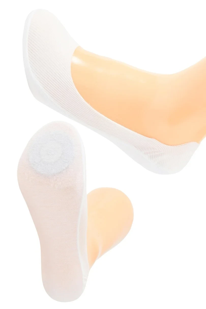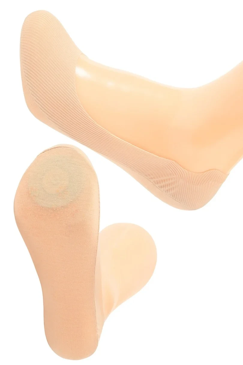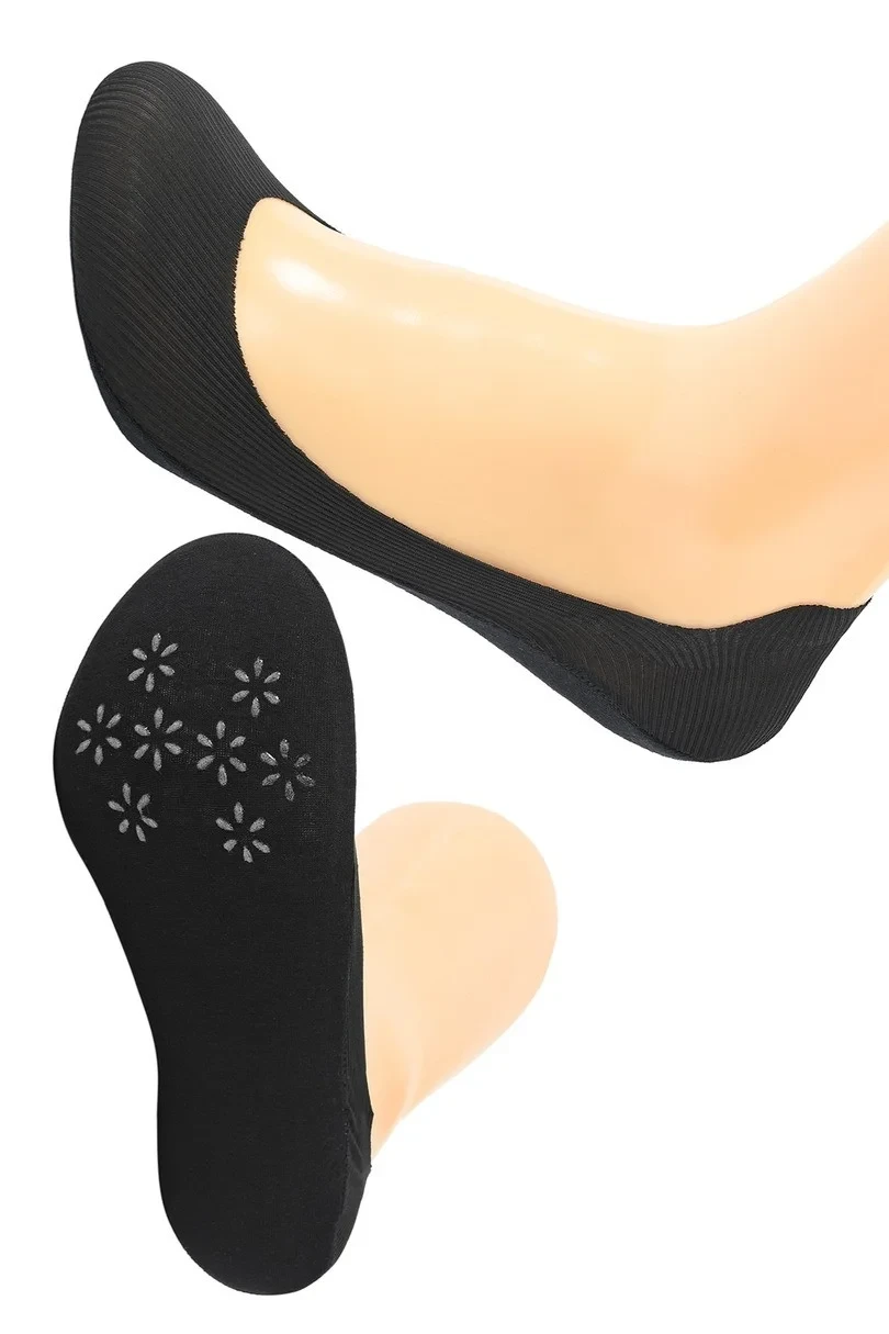 Dámské baleríny se silikonovým podpatkem a ABS. Složení: vrchní díl - 85 % nylon, 15 % elastan; spodní díl - 80 % bavlna, 15 % polyester, 5 % elastan