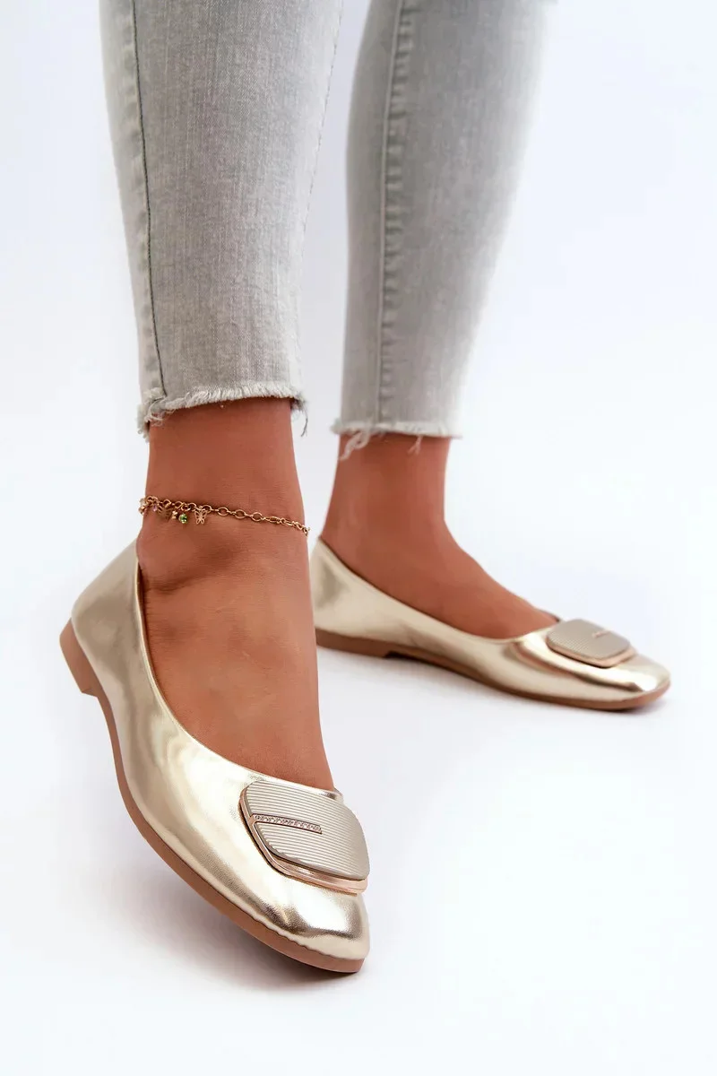 Dámské baleríny z eko kůže se zlatým zdobením Edoslli