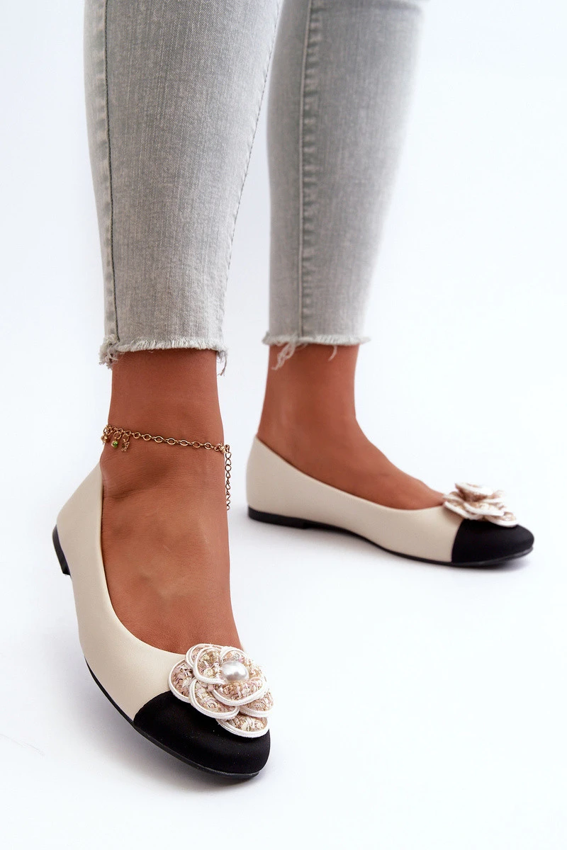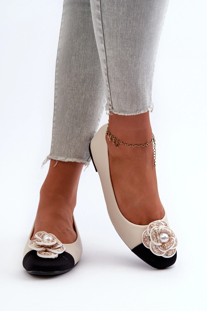 Dámské baleríny z ekologické kůže s ozdobným detailem béžové model 21666309 - Boto