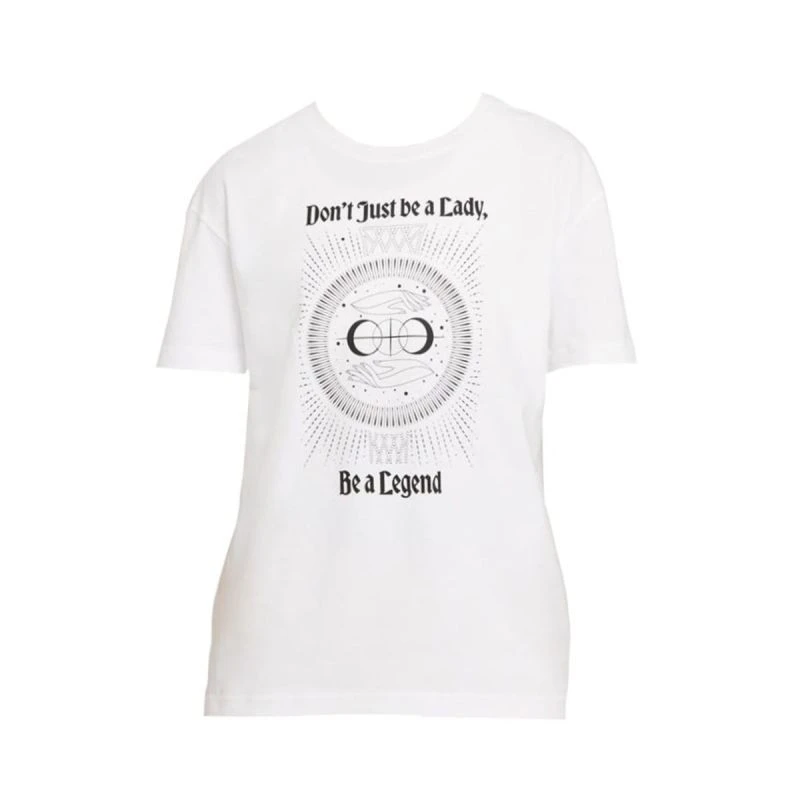 Na froncie nadrukowano motywującą grafikę nawiązującą do koszykówki z napisem "Don't Just be a Lady, Be a Legend"