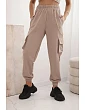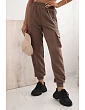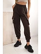 Dámské bavlněné cargo kalhoty s kapsami a řetízkem hnědé