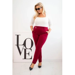 Dámské bavlněné kalhoty Plus Size s elastickým pasem bordové