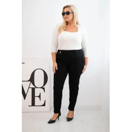 Dámské bavlněné kalhoty Plus Size s elastickým pasem černé