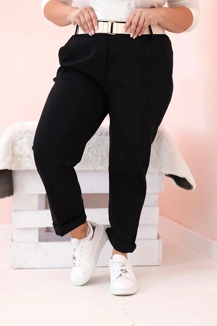 Dámské bavlněné kalhoty Plus Size s páskem černý