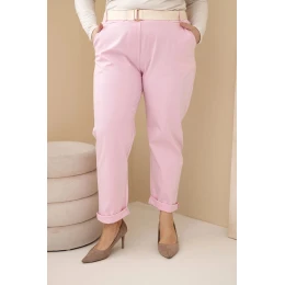 Přidání recenze k Dámské bavlněné kalhoty Plus Size s páskem světle růžové