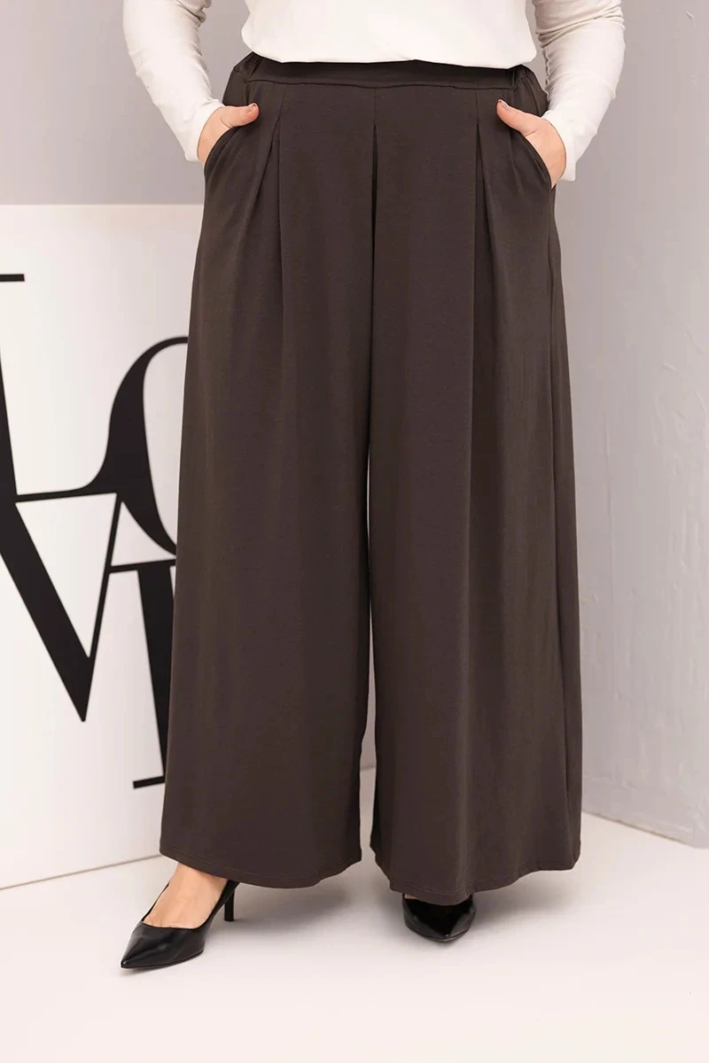 Dámské bavlněné kalhoty Plus Size s širokou nohavicí a volným střihem hnědé