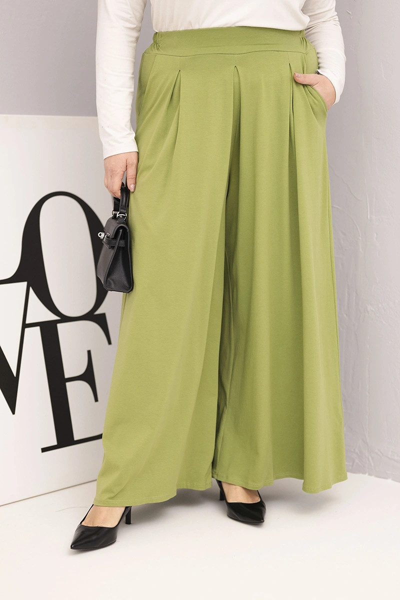 Dámské bavlněné kalhoty Plus Size s širokým střihem a volným střihem pistáciové
