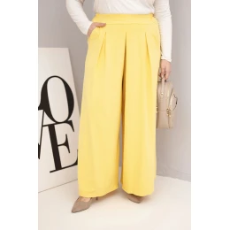 Stylové a nesmírně pohodlné dámské kalhoty Plus Size s širokým, vzdušným nohavicím jsou ideální nabídkou pro dámy, které si cení pohodlí a módního, lehce oversize stylu. Díky velmi širokému střihu se kalhoty krásně pohybují během pohybu, vytvářejí efekt maxi sukně, a elastický pas zajišťuje dokonalé přizpůsobení bez tlaku.