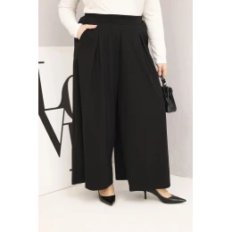 Stylové a nesmírně pohodlné dámské kalhoty Plus Size s širokým, vzdušným nohavicím jsou ideální nabídkou pro dámy, které si cení pohodlí a módního, lehce oversize stylu. Díky velmi širokému střihu se kalhoty krásně pohybují během pohybu, vytvářejí efekt maxi sukně, a elastický pas zajišťuje dokonalé přizpůsobení bez tlaku.