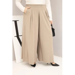 Stylové a nesmírně pohodlné dámské kalhoty Plus Size s širokým, vzdušným nohavicím jsou ideální nabídkou pro dámy, které si cení pohodlí a módního, lehce oversize stylu. Díky velmi širokému střihu se kalhoty krásně pohybují během pohybu, vytvářejí efekt maxi sukně, a elastický pas zajišťuje dokonalé přizpůsobení bez tlaku.