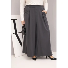 Stylové a nesmírně pohodlné dámské kalhoty Plus Size s širokým, vzdušným nohavicím jsou ideální nabídkou pro dámy, které si cení pohodlí a módního, lehce oversize stylu. Díky velmi širokému střihu se kalhoty krásně pohybují během pohybu, vytvářejí efekt maxi sukně, a elastický pas zajišťuje dokonalé přizpůsobení bez tlaku.