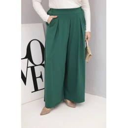 Stylové a nesmírně pohodlné dámské kalhoty Plus Size s širokým, vzdušným nohavicím jsou ideální nabídkou pro dámy, které si cení pohodlí a módního, lehce oversize stylu. Díky velmi širokému střihu se kalhoty krásně pohybují během pohybu, vytvářejí efekt maxi sukně, a elastický pas zajišťuje dokonalé přizpůsobení bez tlaku.