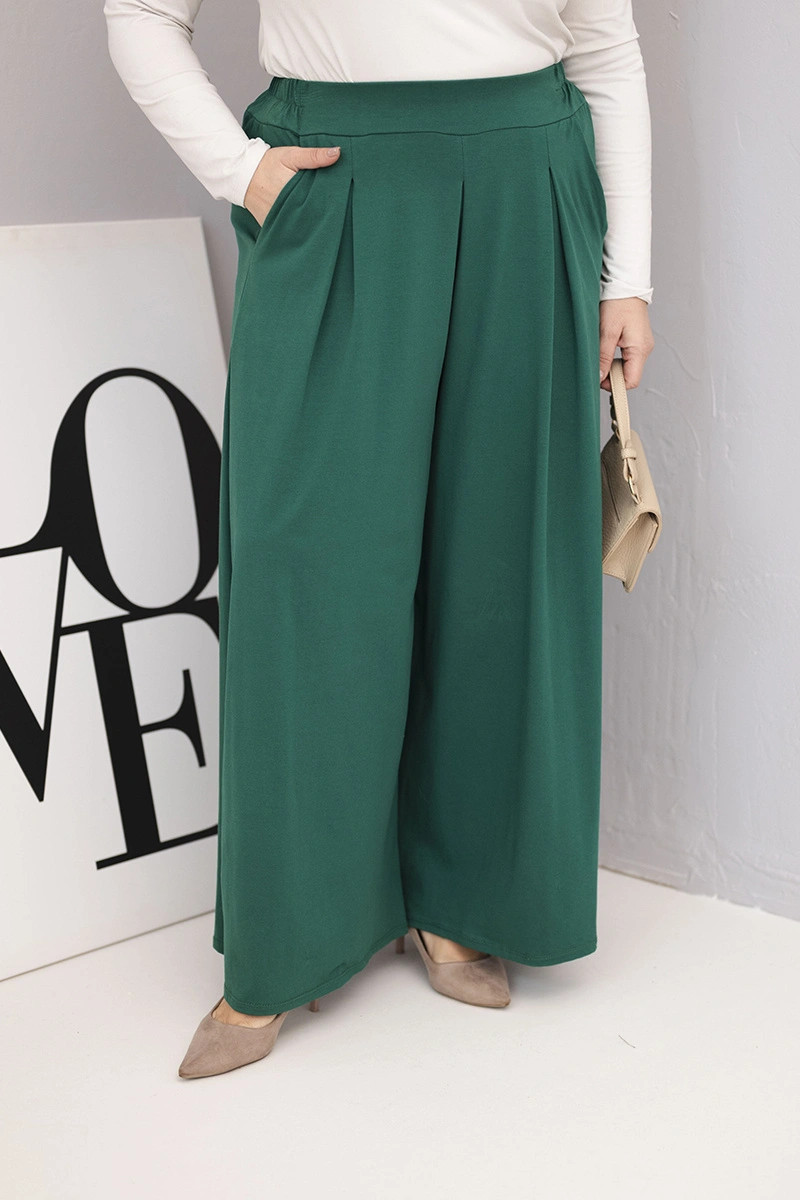 Dámské bavlněné kalhoty Plus Size s širokými nohavicemi a volným střihem tmavě zelené