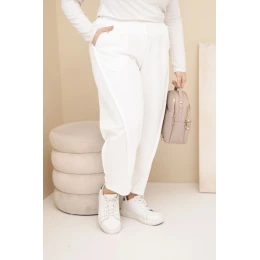 Dámské bavlněné kalhoty Plus Size volného střihu s vysokým pasem ecru
