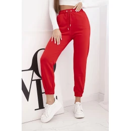 Dámské bavlněné kalhoty s gumou v pase červené