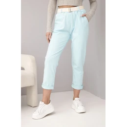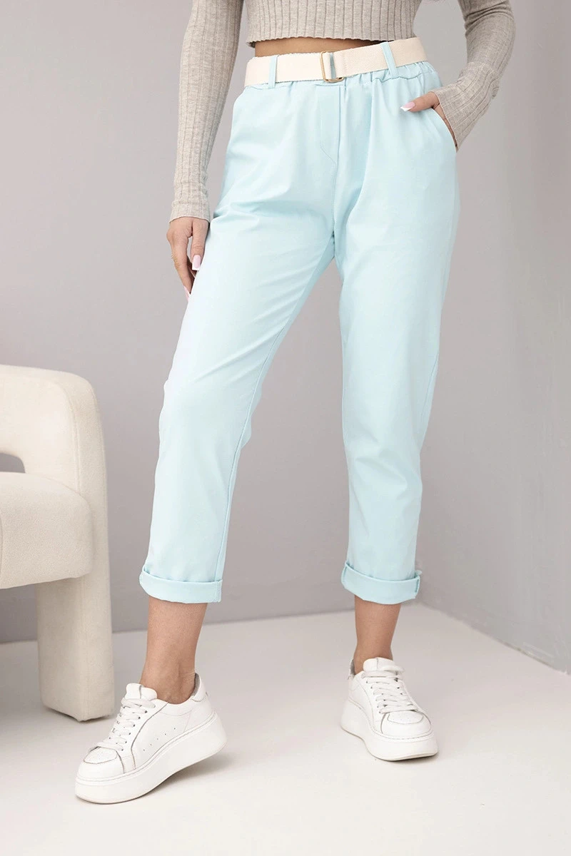 Přidání recenze k Dámské bavlněné kalhoty s páskem a ohrnutým nohavicí mátové