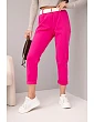 Dámské bavlněné kalhoty s páskem a ohrnutými nohavicemi fuksja