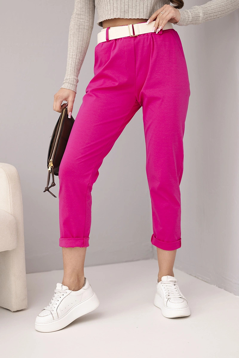 Dámské bavlněné kalhoty s páskem a ohrnutými nohavicemi model 22010182 - K-Fashion