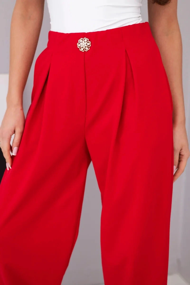 Dámské bavlněné kalhoty s vysokým pasem a ozdobným knoflíkem červené
