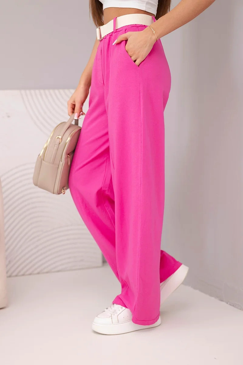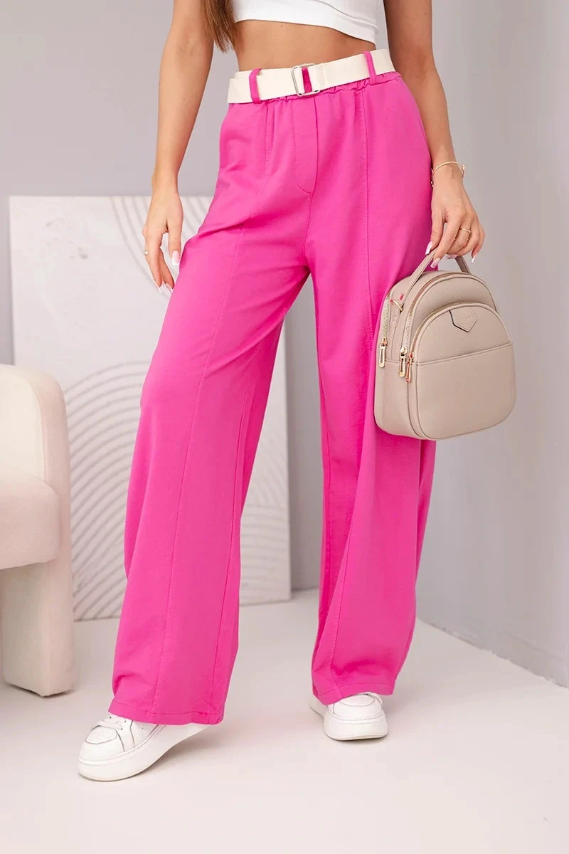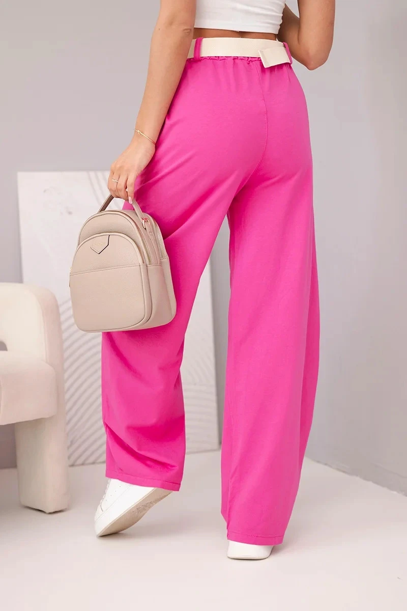 Dámské bavlněné kalhoty se širokými nohavicemi a pásem růžové