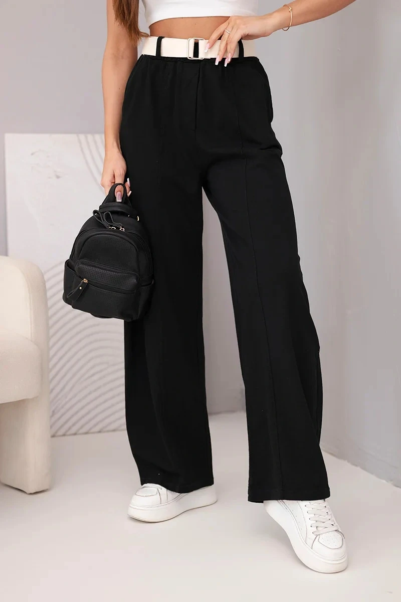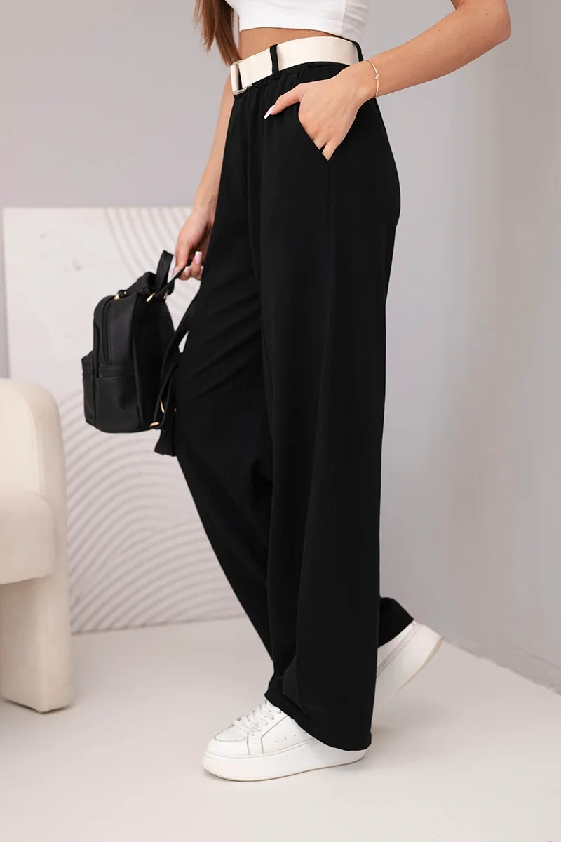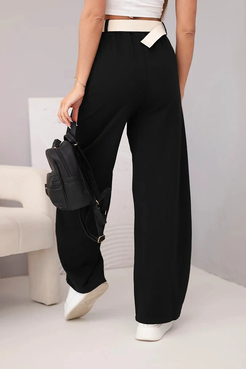 Dámské bavlněné kalhoty se širokými nohavicemi a páskem černé