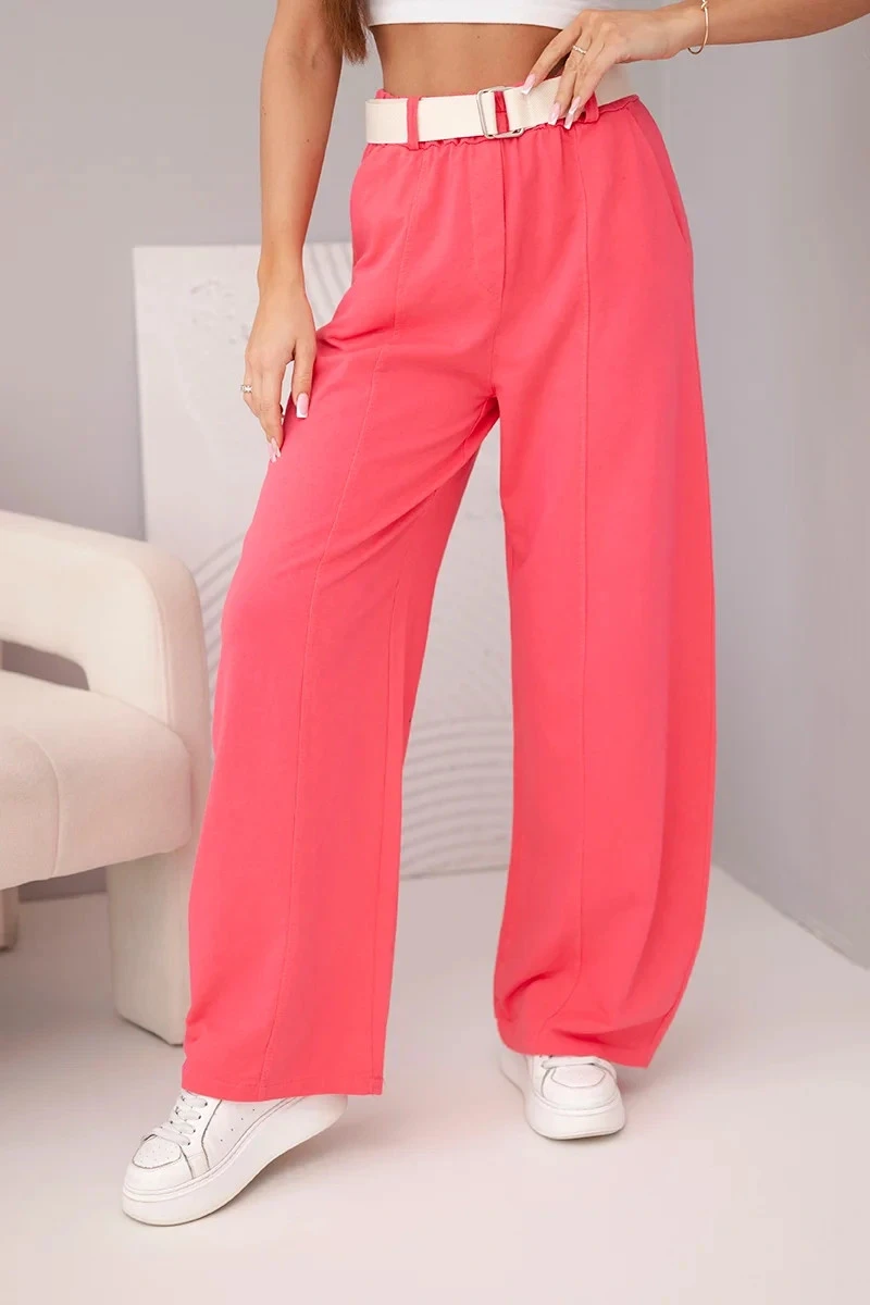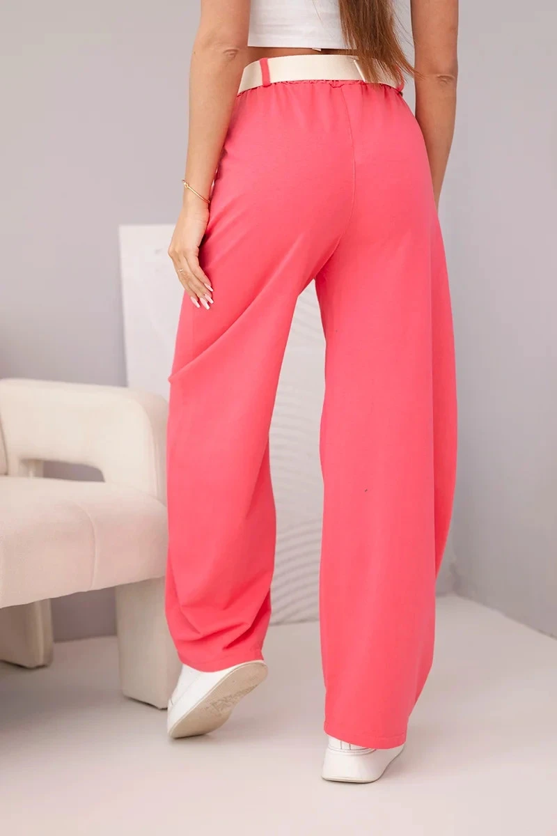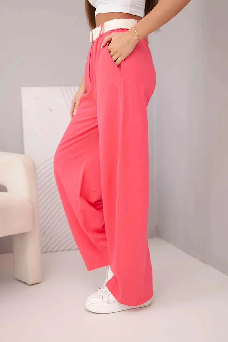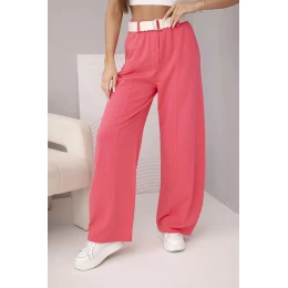 Dámské bavlněné kalhoty se širokými nohavicemi a páskem malinové