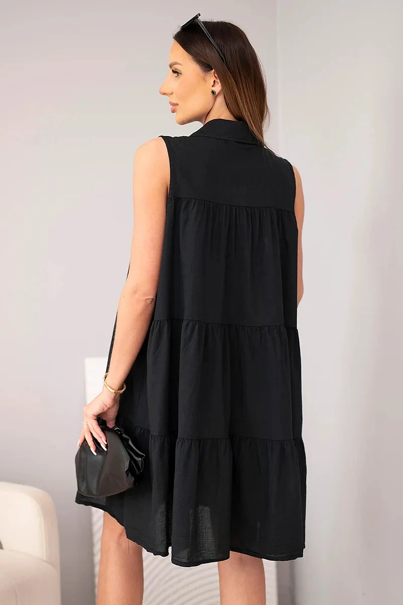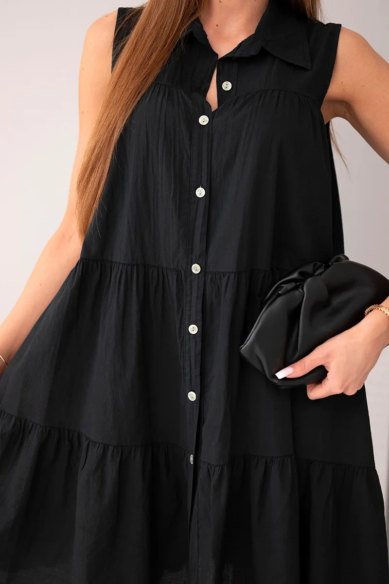 Dámské bavlněné košilové šaty bez rukávů s knoflíky černá