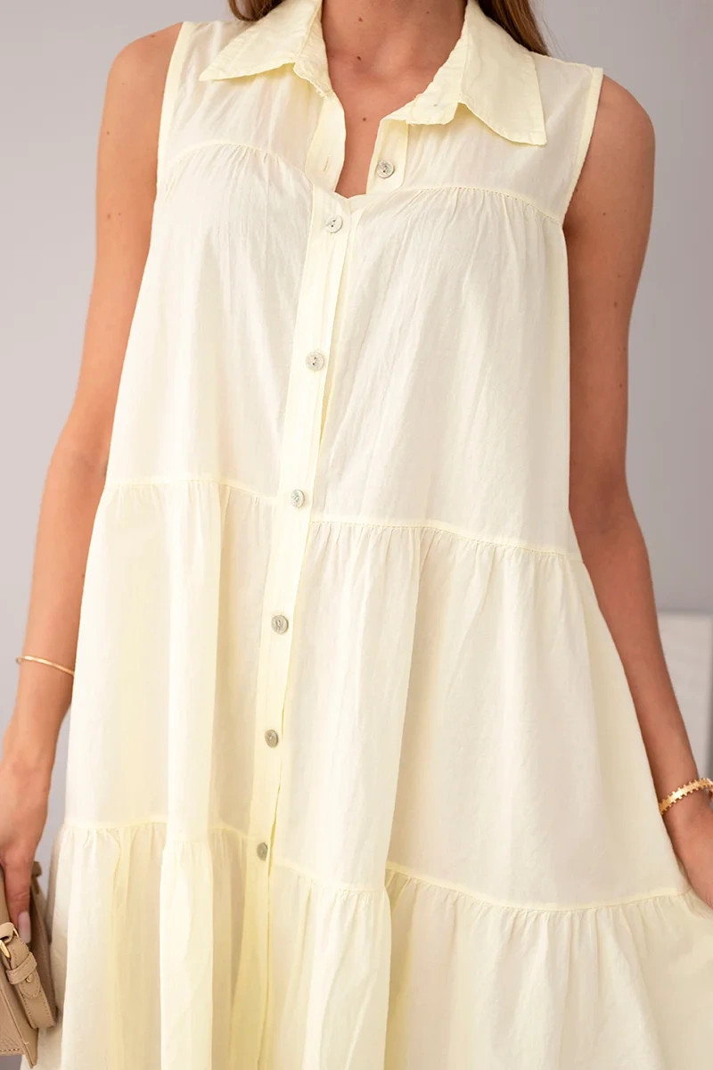 Dámské bavlněné košilové šaty bez rukávů s knoflíky žlutá