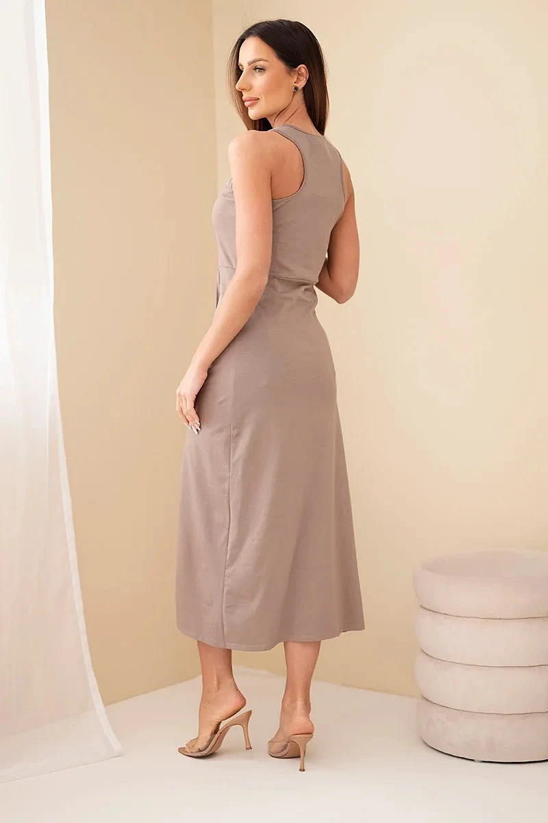 Dámské bavlněné midi šaty bez rukávů s nařasením fango