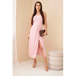 3. Dámské bavlněné midi šaty bez rukávů s řasením světle pudrově růžové