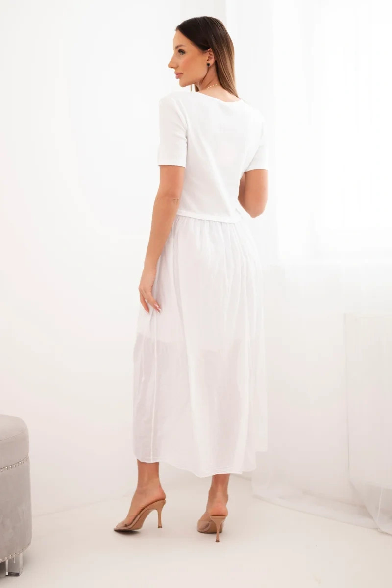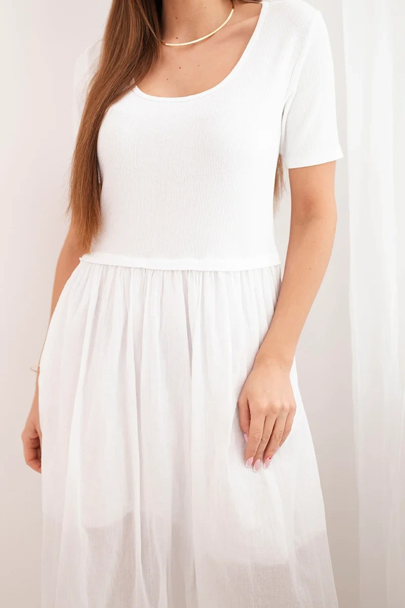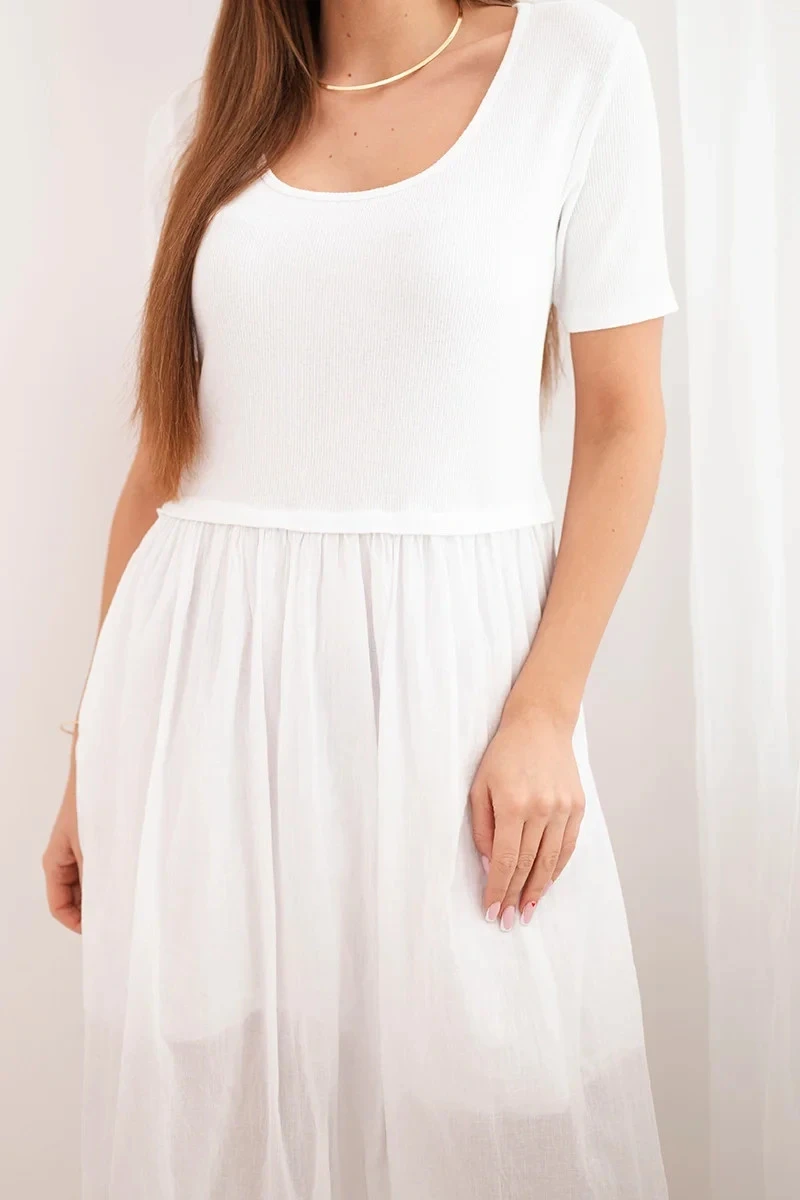 Dámské bavlněné midi šaty s krátkým rukávem a rozšířeným spodkem bílá