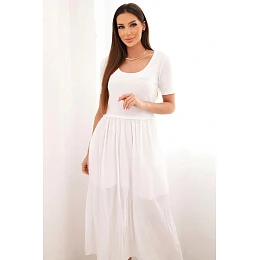 Dámské bavlněné midi šaty s krátkým rukávem a rozšířeným spodkem bílá