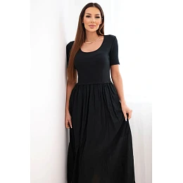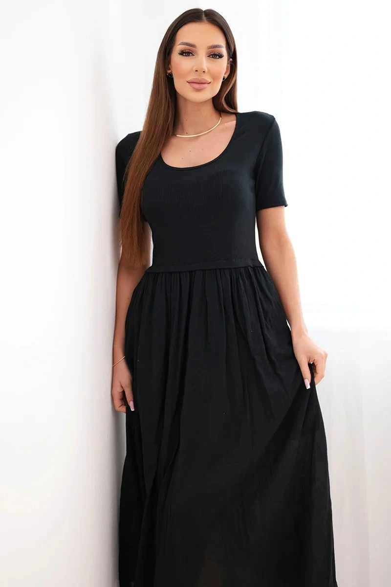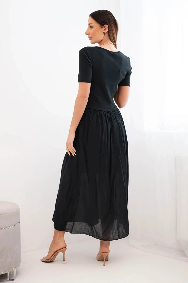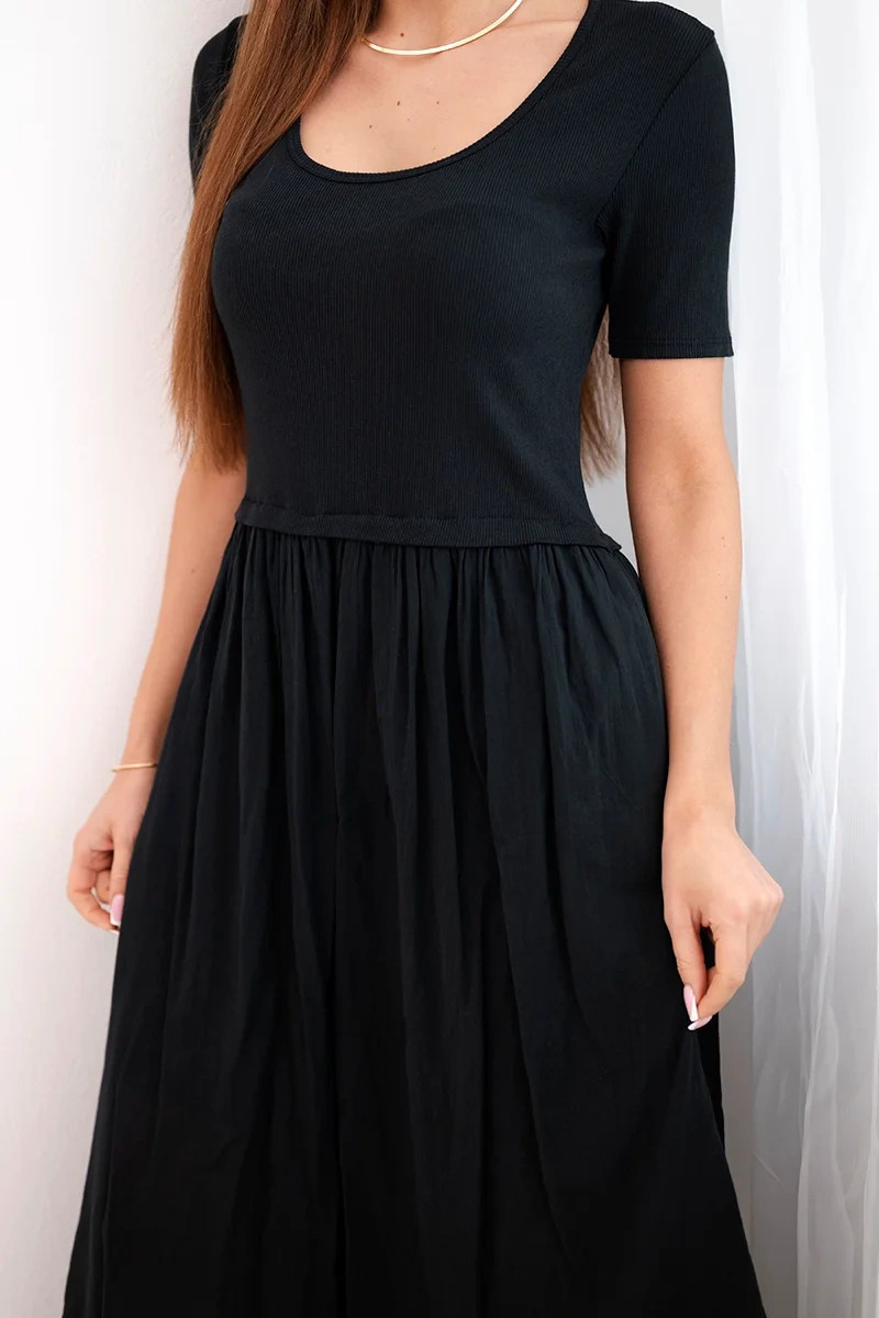 Dámské bavlněné midi šaty s krátkým rukávem a rozšířeným spodkem černá