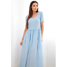 Dámské bavlněné midi šaty s krátkým rukávem a rozšířeným spodkem modrá
