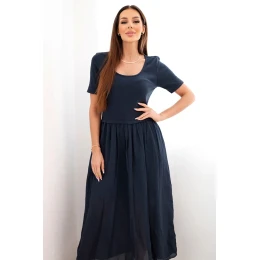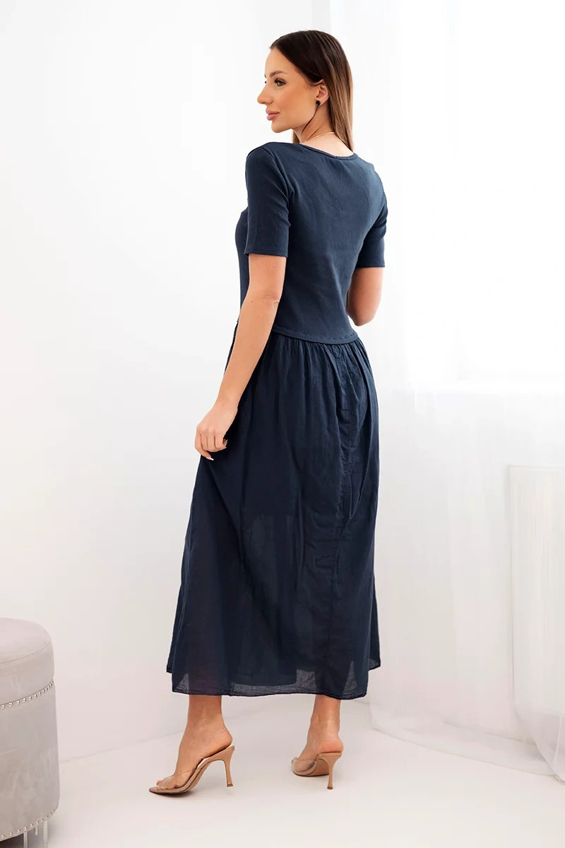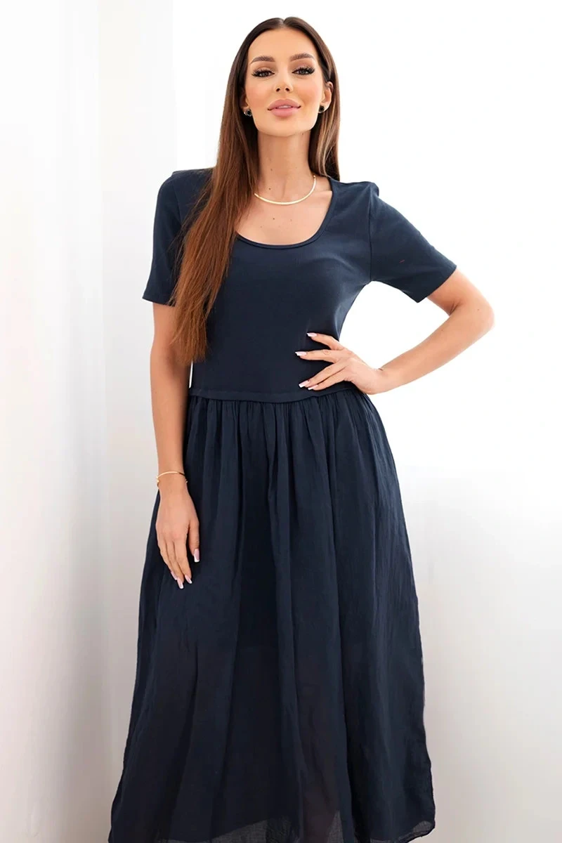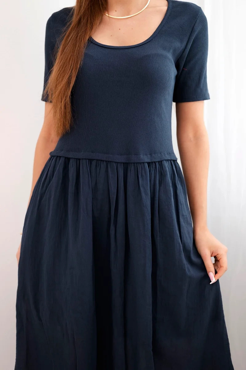 Dámské bavlněné midi šaty s krátkým rukávem a rozšířeným spodkem námořnická modrá