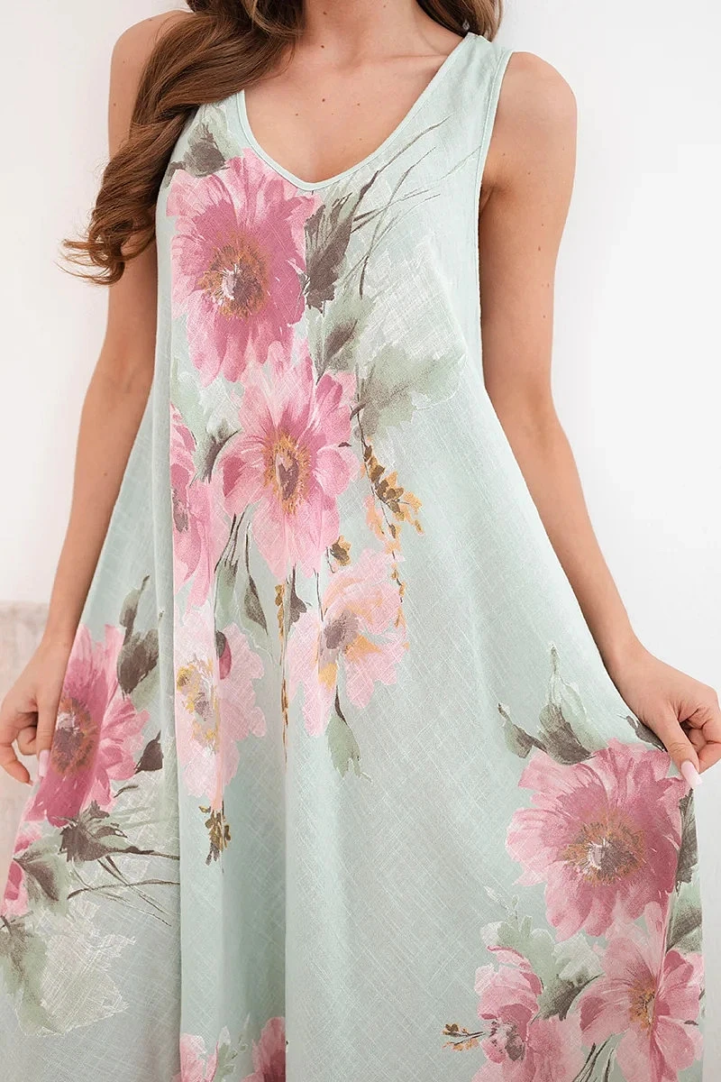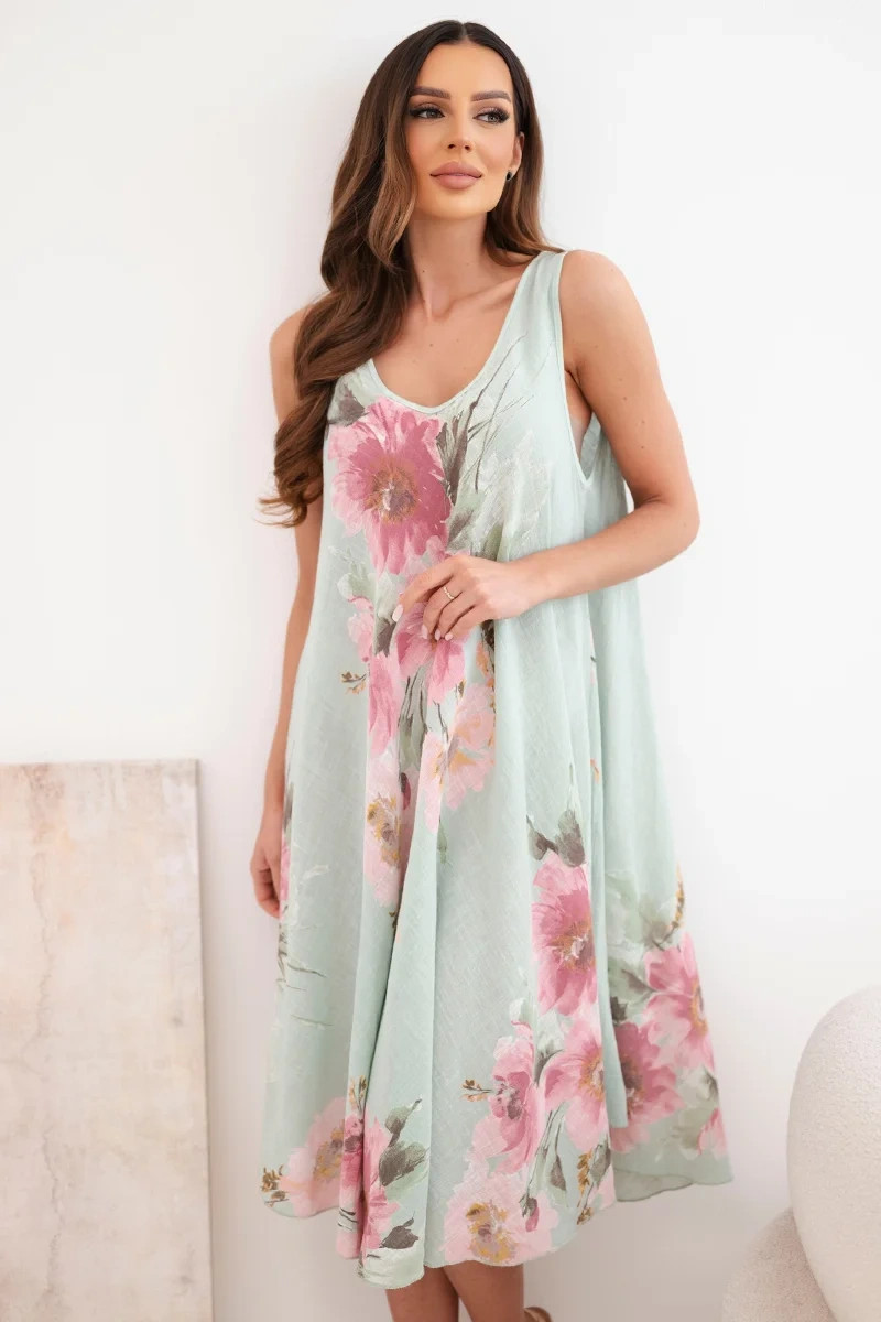 Model vyniká jemným výstřihem do tvaru V a efektním květinovým potiskem, který dodává celku romantický charakter. Je to vynikající volba pro ženy, které si cení módního vzhledu a pohodlí v jednom. Šaty se skvěle hodí jak k sandálům, tak k sportovní obuvi a vytvářejí stylizace pro různé příležitosti.
