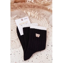 Dámské bavlněné ponožky s malým medvídkem – černé