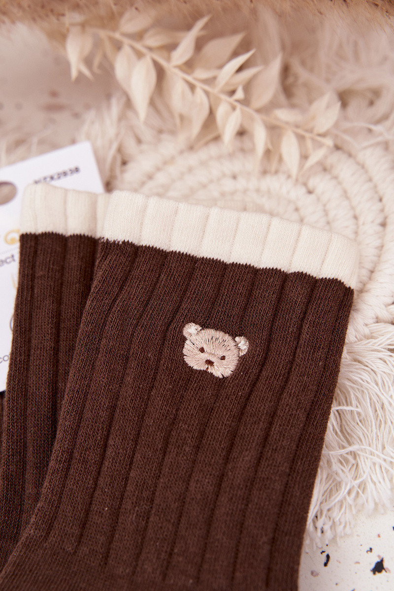 Dámské bavlněné ponožky s malým medvídkem čokoládové