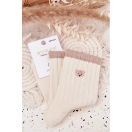 Dámské bavlněné ponožky s malým medvídkem Ecru