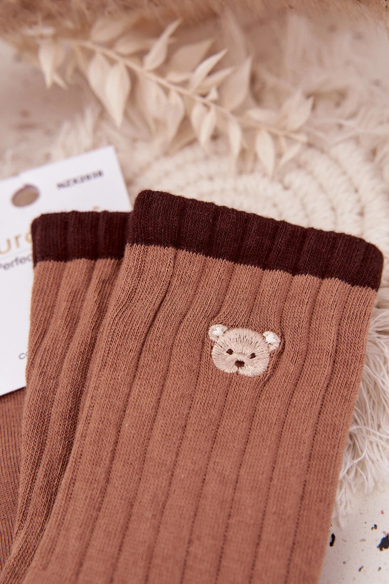 Dámské bavlněné ponožky S malým medvídkem světle hnědé