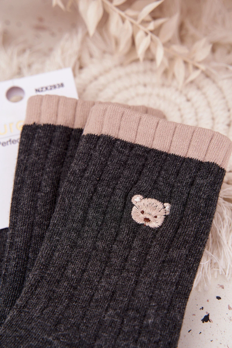 Dámské bavlněné ponožky s malým medvídkem tmavě šedé