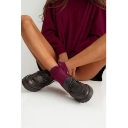 Bordové ponožky s krajkou jsou hladké bordové ponožky s elastickou krajkou kolem kotníku. Nezpochybnitelně přidávají půvabu a elegance.