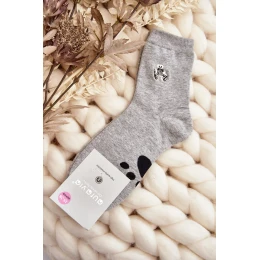 Dámské bavlněné ponožky s nášivkou medvídka, šedá