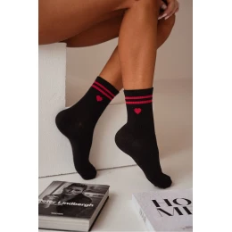 Přidání recenze k Dámské bavlněné ponožky srdce s pruhy černé