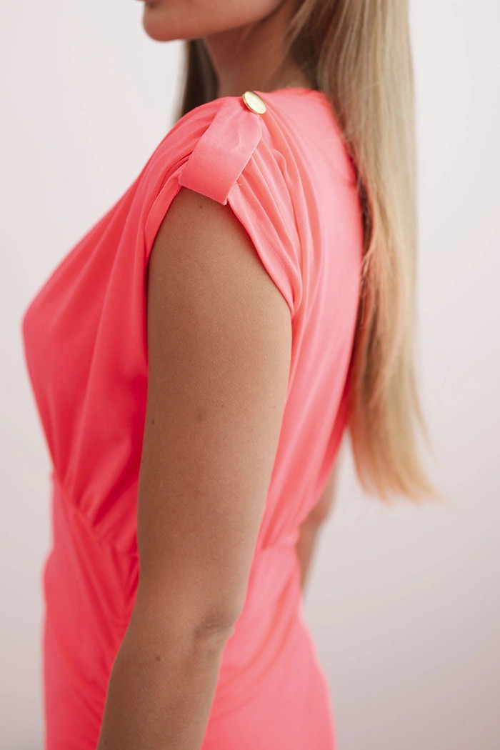 Elegantní a neuvěřitelně ženské dámské šaty vyrobené z měkké, elastické viskózy s přídavkem elastanu. Model s efektním výstřihem do V krásně zvýrazňuje poprsí, zatímco elastický pas a nařasení jemně modelují siluetu. Šaty mají midi délku a rozparek, který dodává lehkost a smyslný charakter. Ideální jak na výjimečné příležitosti, tak na letní vycházky nebo setkání.