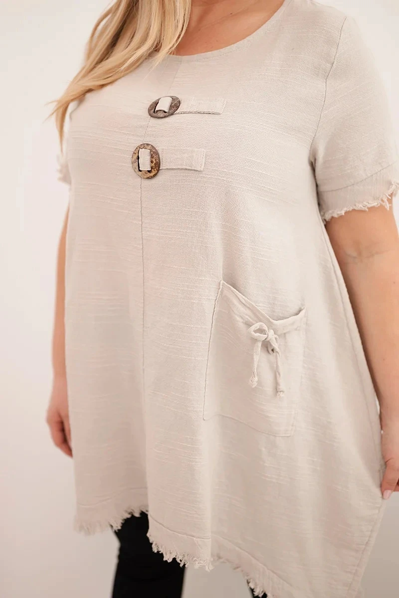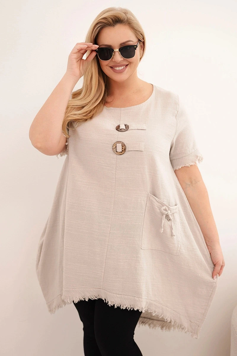 • Dámské bavlněné šaty Plus Size s delším zadním dílem a kapsou béžová