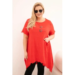 • Dámské bavlněné šaty Plus Size s delším zadním dílem a kapsou červená