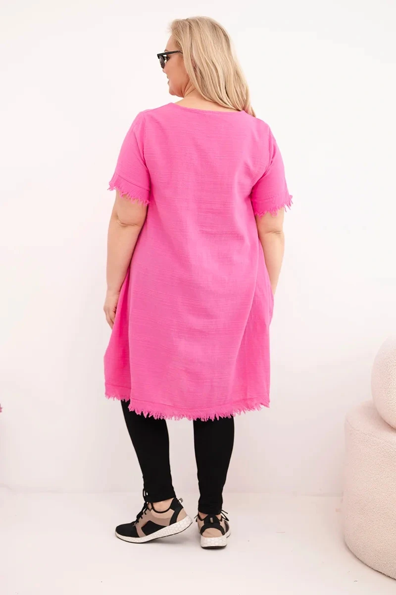 • Dámské bavlněné šaty Plus Size s delším zadním dílem a kapsou růžová
