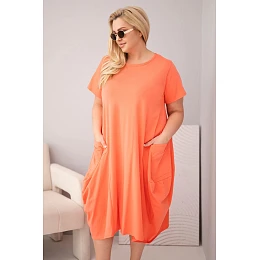 Moderní dámské šaty plus size s volným oversize střihem jsou ideální volbou pro ženy, které si cení pohodlí a módního vzhledu v každodenních stylingech. Minimalistický design v kombinaci s funkčními detaily zajišťuje, že tento model bude skvěle fungovat jak na běžné nošení, tak při neformálních příležitostech. Šaty mají krátký rukáv a klasický kulatý výstřih, což jim dodává univerzální charakter.